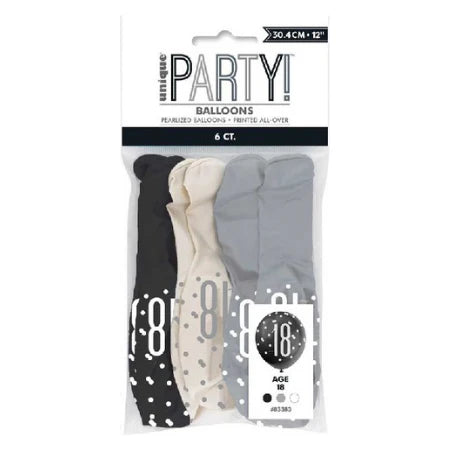Make your loved one's 18th birthday extra special with these Black Glitz Age 18 Assorted Biodegradable Latex Balloons. Each pack contains 6 balloons, each measuring 30cm/12 inches in diameter. These balloons are not only fun and colourful, but also environmentally friendly.