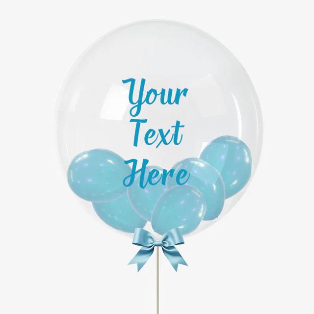 Can't find the right balloon in our amazing selection? Why not personalise this gorgeous 24" Helium-filled Bubble Balloon! Choose from a selection of colours for the small balloons inside the clear bubble balloon and let us know what you'd like it to say. The wording colour will match the small inside balloons.