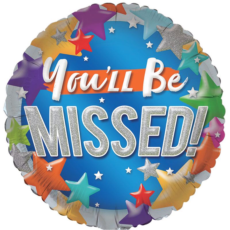 You'll Be Missed Foil Balloon – 18" Send a cheerful reminder that someone's absence is definitely felt with this vibrant 18-inch foil balloon. Whether you're bidding farewell to a colleague heading off on adventure, saying goodbye to a friend moving away, or adding a touch of humour to a farewell gathering, this balloon delivers your message with style. The eye-catching foil material keeps its shape beautifully, making it perfect for balloon bouquets, doorway displays, or as a standalone statement piece. Easy to inflate and built to last, it's the fun way to acknowledge that life just isn't quite the same without them around. Pair it with confetti, streamers, or other balloons to create a memorable send-off celebration.